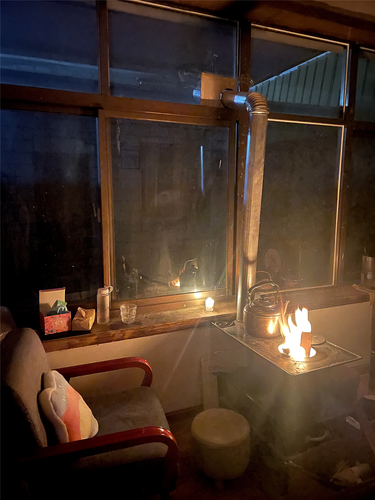 一年过去,多少有些物是人非。和邻居已经闹掰老死不相往来,不再有源源不断的木柴供应,只能靠自己在小区四处捡和偷,还得省着点用。电锯变成手锯,没有易燃的牛粪和95%的酒精,生火技术却越发娴熟,基本一次就可点燃,颇有些臻于化境的自得。当火焰再一次跳起舞蹈,熟悉的月光洒下来,我在火炉边坐下,点起蜡烛,煨上酒,一室飘香,再一个人慢慢把酒喝完。